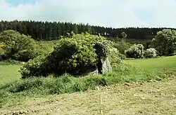 Nördlich des Flusses liegen/stehen die Steine von Castletimon. Ein Menhir (englisch Standing stone) und ein Oghamstein.
