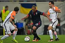 Auch portugiesische Fußballspieler treten gelegentlich für Vereine in der Ukraine an, etwa Bruno Gama, der 2013 bis 2016 beim FK Dnipro spielte, oder Filipe Teixeira, der 2010/11 das Trikot von Metalurh Donezk anzog.