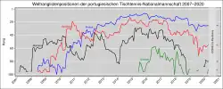 Der erste portugiesische Spieler, der in der Weltrangliste eine Platzierung unter den besten 100 erreichte, war João Monteiro, der im März 2007 auf Platz 96 kam. Bei dessen erster Weltmeisterschafts-Teilnahme im Jahr 2000 belegte das portugiesische Team, das sich in den Jahren danach kontinuierlich verbesserte, noch Rang 59. Ihm folgten im Juni 2008 Tiago Apolónia und Marcos Freitas in die Top 100, in diesem Jahr erreichte Monteiro als erster Portugiese eine Top-50-Platzierung, und bei der Weltmeisterschaft kam die Mannschaft auf Platz 27, womit sie sich für die Championship Division der nächsten WM qualifizierte. Bei der Europameisterschaft im selben Jahr stieg sie dagegen durch den 15. Platz in die Challenge Division ab, in der sie 2009 aber den bestmöglichen 17. Rang erreichen und wieder aufsteigen konnte. 2010 erreichte Apolónia als erster Portugiese eine Top-20-Platzierung, und 2011 folgte für das Team durch den EM-Halbfinaleinzug die erste internationale Medaille.