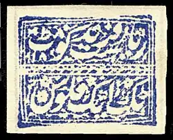 Die erste Marke erschien am 8. September 1869 und war eine querformatige 1-Anna-Marke in olivgrün mit arabisch-persischer Kalligraphie, die im Stichtiefdruck bei Parker & Nissen in London gedruckt wurde. Neudrucke dieser Marke wurden bereits kurz nach der Verwendungszeit in anderen Farben hergestellt, die jedoch nicht postalisch gebraucht vorkommen.