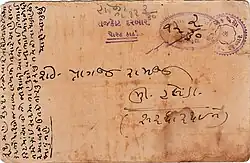 - ↑ Abbildung eines Umschlages aus Rajkot, links neben dem Wertstempel die Unterschrift des Richters H. R. Buch