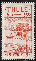 1935 erhielt die von Knud Rasmussen gegründete Thule-Station in Uummannaq (Dundas) das Recht eigene Briefmarken herauszugeben. Am 16. Juli 1935 kam es schließlich zur Ausgabe solcher Briefmarken. Sie wurden in Kopenhagen auf private Initiative erstellt. Es handelt sich somit um die ersten Freimarken, die in Grönland verwendet wurden. Diese vierteilige Briefmarkenserie trug die Inschrift Thule / 1910–1935. Die Werte zu 10, 15, 30 und 45 Øre zeigten Walrosse, die dänische Flagge, Knud Rasmussen und das Kap York. Im Jahre 1936 wurde ein weiter Ergänzungswert zu 25 Øre mit einem Bild der Siedlung ausgegeben. 1937 wurde die Station verstaatlicht und damit dänische Kolonie, womit die private Schiffspostverbindung nach Kopenhagen am 31. Juli 1937 wieder eingestellt wurde.[6]