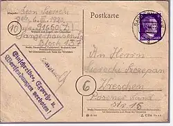 - ↑ Aufruf! „Wie trage ich zur schnellen Beförderung meiner Post bei?“ S. 13. In: Reichspostministerium (Hrsg.): Postnachrichtenblatt – Mitteilungen aus dem Post- und Fernmeldedienst. 24. Jahrgang, Nr. 3, Berlin 22. Januar 1944
