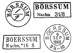Seit 1846 wurde in Börßum ein Zweikreissehnenstempel eingeführt, in dem das Datum handschriftlich einzutragen war. Er wurde 10 Jahre später von einem Rechteckstempel abgelöst, mit Angabe von Vor- oder Nachmittag einem Stern in der Mitte und das Datum in Ziffern. Einen Zweikreisstempel mit Datum, Jahr und Uhrzeit ist im Jahre 1865 eingeführt worden. Zur Entwertung der braunschweigischen Postwertzeichen (1856) gab es den Rostrautenstempel mit der Nummer "6".