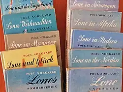 In Deutschland wurde Nørgaard in den 1950er und 1960er Jahren unter dem Autorennamen Poul Nörgaard vor allem durch die bereits in Skandinavien sehr erfolgreiche Buchreihe um das Mädchen Lone bekannt, das im dänischen Original Lykke, in der schwedischen Fassung Lena und im Italienischen Leontina hieß. Das Vorbild für die Protagonistin Lone, die auf einem Rückdeckel der Reihe als „ein junges Mädchen mit blauen Augen und blonden Haaren, das nicht auf den Mund gefallen ist, ein gutes Herz hat, sich gerne fremde Länder ansieht; ehrlich zugibt, wenn es einen Fehler gemacht hat, auch hin und wieder einen Streich riskiert“ beschrieben wird,[8] soll Nørgaards eigene Tochter gewesen sein, deren Erlebnisse ihn zu den Lone-Büchern inspirierten.[9] Die Lone-Reihe erschien in Deutschland im Verlag C. Bertelsmann in der Übersetzung von Albrecht Leonhardt mit Illustrationen des deutschen Künstlers Kurt Tessmann. Sie wurde mehrfach neu aufgelegt, zuletzt in den 2010er Jahren in moderner optischer Aufmachung im E-Book-Format.