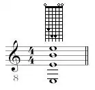 Beispiele für Powerchords mit Grundton C (die Hochindizes kennzeichnen die Oktave):