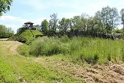 Die Erde für den Bau der Poype stammt aus dem Graben. Auf dem Hügel befindet sich ein Turm, der von einer Palisade umgeben ist. Ein Steg ermöglichte es, den Graben zu überqueren, um den auch von einem Graben umgebene Zwinger zu erreichen, der die Bewohner und ihre Tiere schützte.
