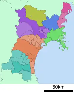 | Watari | -chō | Watari | 73,60 km² | 32.846 | Sendai Metro |