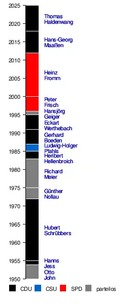 | 16. September 1975 – 26. April 1983 | Richard Meier | Rücktritt wegen einer Privataffäre (verurteilt wegen fahrlässiger Tötung in einem Verkehrsunfall). |