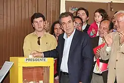 Wer für das Präsidentenamt kandidieren möchte, muss mindestens 35 Jahre alt und in Chile geboren sein.[19] Präsidentschaftskandidaten werden in der Regel von einer Partei oder einem Parteienbündnis nominiert. Im Gegensatz zu anderen lateinamerikanischen Staaten gibt es in Chile keinerlei Vorschriften, wie die Kandidatenkür ablaufen muss, so dass sich zwischen den beiden politischen Blöcken deutliche Unterschiede feststellen lassen: Innerhalb der Concertación hat sich der Auswahlprozess seit dem Ende des Pinochetregimes immer weiter demokratisiert und für Außenstehende geöffnet. 1989 wurde der Kandidat noch in Führungszirkeln bestimmt, 1993 gab es geschlossene Vorwahlen, an denen Anhänger der Concertación teilnehmen konnten, und 1999 fanden offene Vorwahlen statt. Seit 2005 haben die Parteien der Concertación ihre offenen Nominierungspraktiken vereinheitlicht und institutionalisiert.[22] Die ausgewählten Kandidaten können allesamt als loyale Parteigänger oder der Partei nahestehende Personen bezeichnet werden.[23]