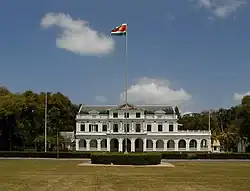 Das frühere Gouverneurs- und heutige Präsidentenpalais steht am Onafhankelijkheidsplein (Unabhängigkeitsplatz) in Paramaribo, Suriname.