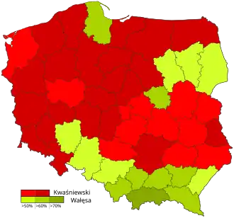 | Aleksander Kwaśniewski | Sojusz Lewicy Demokratycznej | 6.275.670 | 35,1 | 9.704.439 | 51,7 | |