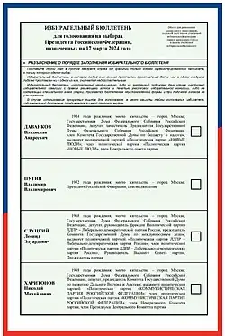 - ↑ Правила регистрации кандидатов-самовыдвиженцев на выборах президента РФ. Abgerufen am 1. Januar 2024.