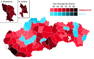 In der zweiten Wahlrunde siegte Gašparovič mit fast 60 %; Mečiar konnte nur in 8 von 50 Wahlbezirken eine Mehrheit erreichen.