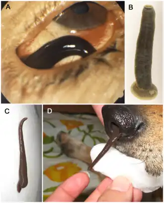 - ↑ a b Anna J. Phillips, Renzo Arauco-Brown, Alejandro Oceguera-Figueroa, Gloria P. Gomez, María Beltrán, Yi-Te Lai, Mark E. Siddall (2010): Tyrannobdella rex n. gen. n. sp. and the evolutionary origins of mucosal leech infestations. PLoS One 5 (4), e10057. doi: 10.1371/journal.pone.0010057.