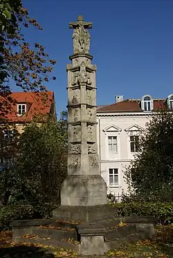 Die Predigtsäule in Regensburg ist ein 8 m hohes steinernes Monument von der Art eines Wegkreuzes, dessen Entstehung im 14. Jahrhundert im Dunkeln liegt und zu Spekulationen Anlass gab. Auf den vier Seiten des Schaftes sind auf sechs Gesimsen 24 Reliefbilder mit vielfältigen religiösen Motiven erkennbar.[1]