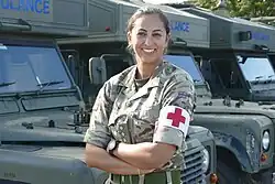 In dieser Zeit trat sie 2008[7] mit 19 Jahren als Reservistin in das „Royal Army Medical Corps“ der British Army ein. Mit dem Gehalt und Stipendien konnte sie ihr Studium finanzieren, das sie 2012 abschloss.[4] Sie arbeitete beim National Health Service, kündigte ihre Stelle aber nach kurzer Zeit und trat 2016 der „Regular Army“ in Vollzeit als Berufssoldatin bei.[5] Sie wurde in Nepal, Kenia und im Südsudan eingesetzt, wo sie an einer sechsmonatigen UN-Friedenssicherungsmission teilnahm. 2021 war sie als Physiotherapeutin beim „3. Medical Regiment“[8] und pendelte zwischen ihrer Arbeit in Preston und der Queen Mary’s University in London, wo sie ihren Master in Sport- und Bewegungsmedizin mit Auszeichnung abschloss.[6]
