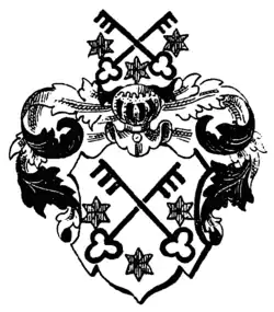 Das Stammwappen zeigt in Weiß zwei schwarze (rote) ins Andreaskreuz gesetzte schwarze Schlüssel, begleitet an den Seiten von zwei, unten von einem roten Stern. Auf dem Helm, mit schwarz-weißen Decken, die Schildfigur.