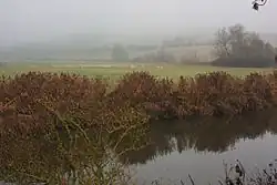 ![]() Blick auf das Naturschutzgebiet Priel von einer benachbarten Anhöhe hinunter ins Wörnitztal | ||