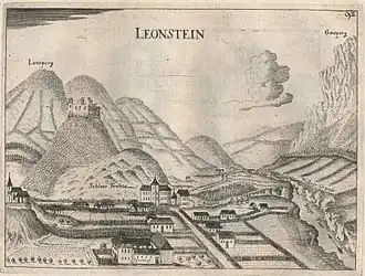 Burg Leonstein am Hausberg könnte schon um 900 bestanden haben, urkundlich ist sie 1140. Sie wurde 1390 nach dreimonatiger Belagerung zerstört, dabei kam erstmals in Österreich ein Feuergeschütz zum Einsatz,[2] es war am Rabenstein gegenüber stationiert. Ein paar Jahre danach wurde wieder ein kleiner Burgstall am Bergfuß errichtet, der in der zweiten Hälfte des 15. Jahrhunderts zum Schloss Feichta (heute „Leonstein“) ausgebaut wurde.