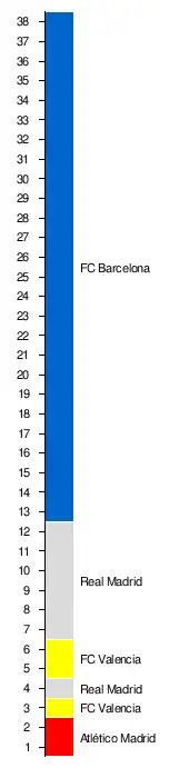- Als Titelverteidiger ging der 20-fache Meister FC Barcelona ins Rennen. Letztjähriger Vizemeister war Real Madrid.