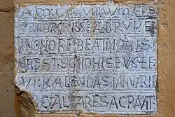 A(nno) M.C.XVII W(illel)M(us) EP(iscopu)S PEAREORICENS(I)S DE ALABRVPE IN HONORE BEATI IOH(ANN)IS B(A)B(TIST)E ET S(AN)C(T)I IOH(ANN)IS EV(AN)G(E)L(IST)E VI KALENDAS IANVARII [H]OC ALTARE SACRAVIT