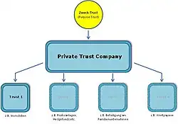 Eine Private Trust Company (PTC) ist eine Sonderform einer Gesellschaft in einigen sog. Offshore-Rechtsordnungen[1] aber auch im Fürstentum Liechtenstein, bei welcher als Trustee (rechtlicher Eigentümer) eines oder mehrerer Trusts die PTC auftritt.[2]