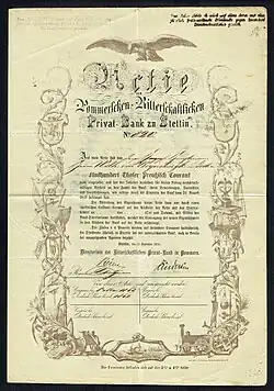 | Ritterschaftliche Privatbank in Pommern | Stettin | Königreich Preußen | 1824 | 1875 |
