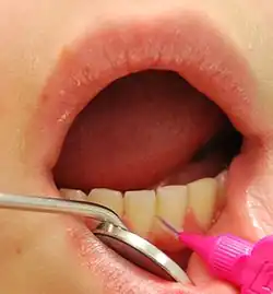 - ↑ Lamont T, Worthington HV, Clarkson JE, Beirne PV: Routine scale and polish for periodontal health in adults. In: Cochrane Database of Systematic Reviews. Nr. 12, 2018, doi:10.1002/14651858.CD004625.pub5 (englisch, Art. No.: CD004625).