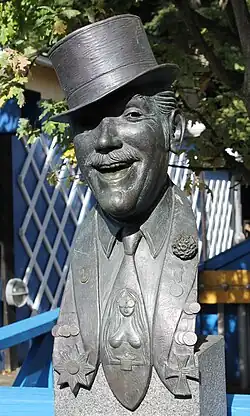 Büste geschaffen von Troels Lybecker - ↑ In den Mustern und Darstellungen dieses Zeltes fand sich der lateinische Spruch Mundus vult desipi, ergo desipiatur. (Korrekt: Mundus vult decipi, ergo decipiatur, dt. Die Welt will betrogen werden, also sei sie betrogen oder freier Die Welt liebt es, getäuscht zu werden). Über diesen Spruch machte Professor Tribini die Bekanntschaft eines deutschen Universitätsprofessors aus Hamburg, der mit einer Dänin verheiratet war. Daraus entwickelte sich eine langjährige Freundschaft mit regelmäßigen Besuchen des Hamburger Ehepaares, das dann immer Plätze in der „kongelogen“ (dt. Königsloge) während der Professor Tribini Show erhielt.