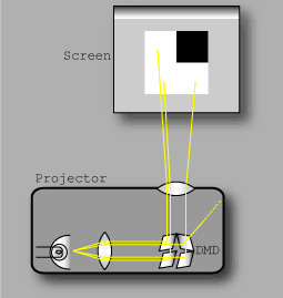 Die Decoder wirken dem darzustellenden Bild entsprechend auf Licht aus einer im Projektor enthaltenen Lichtquelle. Das Licht wird selektiv in den Strahlengang des Objektivs umgelenkt (Spiegel in den Stellungen Ein/Aus oder kontinuierlich veränderlicher Reflexionsgrad). Andere Decoder lassen Licht passieren oder nicht (Stellungen offen/teilweise offen/gesperrt).