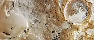 Auf Aufnahmen der Sonde Mars-Express vom 22. September 2005 ist zu sehen, dass Teile davon mit einer bis zu 3500 m dicken Eisschicht bedeckt sind.[2]
