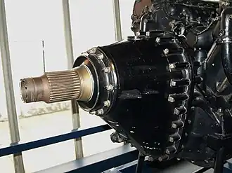 Der Rolls-Royce Falcon von 1915 besaß ein Umlaufrädergetriebe mit einer Kupplung, die das Drehmoment begrenzte, um die Zahnräder des Getriebes zu schützen.[2] Der spätere Rolls-Royce Merlin verwendete gegenläufige Untersetzungsgetriebe, um gegenläufige Propeller für zweimotorige Flugzeuge anzutreiben – im Gegensatz zu Entwicklung und Bau zweier Motorvarianten mit entgegengesetzter Drehrichtung eine weit günstigere Methode.[3]