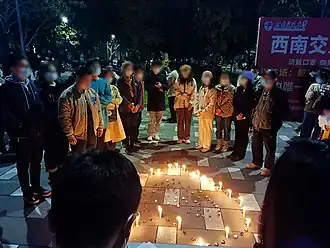 Protest und Dissens in China haben sich trotz Einschränkungen der Versammlungsfreiheit und der Redefreiheit in der Volksrepublik China ausgebreitet. Vor allem in den Jahrzehnten seit dem Tod von Mao Zedong fanden verschiedene Proteste und Dissidentenbewegungen statt. Zu den bemerkenswertesten gehören der Tibetaufstand 1959 gegen die Herrschaft der Kommunistischen Partei Chinas, die Protestbewegung um den Tian’anmen-Platz 1989, das mit militärischer Gewalt niedergeschlagen wurde, und die Demonstration von 10.000 Falun-Gong-Praktizierenden am 25. April 1999 in Zhongnanhai. Demonstranten und Dissidenten in China setzten sich gegen verschiedenste Missstände ein, unter anderem der Korruption, Zwangsvertreibungen, unbezahlte Löhne, Menschenrechtsverletzungen, Umweltzerstörung,[1] ethnische Proteste, Petitionen für Religionsfreiheit und bürgerliche Freiheiten, Proteste gegen die Einparteienherrschaft sowie nationalistische Proteste gegen das Ausland.[2]