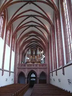 Klosterkirche St. Lambrecht, gegen Westen, mit der Orgel von Johann Georg Geib (1777) auf der Nonnenempore