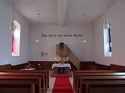 Das Kirchenschiff aus dem 18. Jahrhundert ist ein schlichter barocker Saalbau mit drei Fensterachsen. Der Chorturm aus dem 14. Jahrhundert besitzt ein Satteldach und zwei gotische Maßwerkfenster an der Südseite. Im Inneren der Kirche steht eine Glocke von 1785.[4]