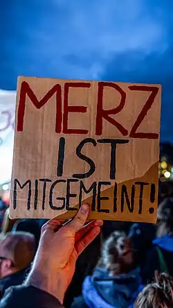 - ↑ Jan Heidtmann, Kathrin Müller-Lancé: Proteste - „Shame on you, CDU“. In: sueddeutsche.de. 3. Februar 2025, abgerufen am 3. Februar 2025.