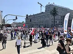 - ↑ Gegen konservative Regierung - «Dies ist die grösste Demonstration in der Geschichte Warschaus». 1. Oktober 2023, abgerufen am 3. Mai 2024.