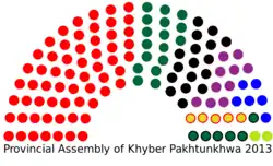 Bei den Provinzialwahlen 2013 ging die Pakistan Tehreek-e-Insaf als Wahlsieger hervor.[3] Das ist ein krasser Gegensatz zur letzten Wahl, da hier die letzten Wahlsieger auf den untersten Plätzen aufzufinden waren.