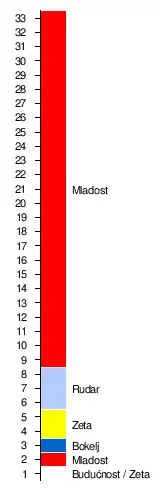 | 2. | FK Budućnost Podgorica | 33 | 19 | 6 | 8 | 48:21 | +27 | 63 |