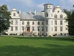 - Das Schloss aus dem frühen 19. Jahrhundert, umgebaut von 1890 bis 1895 durch die Familie von Raczek.