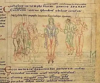 - ↑ Helen Woodruff: The Illustrated Manuscripts of Prudentius. Cambridge, Mass.: Harvard UP, 1930, S. 34f. und passim; zu den hier abgebildeten Handschriften, S. 38f.
