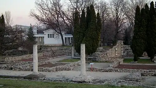 - ↑ Orsolya Láng: Reconsidering the Aquincum Macellum: Analogies and Origins. In: Acta archaeologica Academiae Scientiarum Hungaricae. Band 54, 2003, S. 165–204, DOI:10.1556/AArch.54.2003.1-2.5.