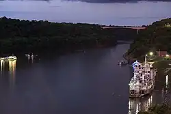Die Spannbetonbrücke hat eine 220 m weite Hauptöffnung über dem Fluss und zwei 130 m weite Seitenöffnungen über den steilen Hängen des Tales. Sie hat einen rechteckigen, 8 m breiten, gevouteten Hohlkasten, dessen Bauhöhe von 12,3 m an den Pfeilern abnimmt auf 3,8 m in Feldmitte. Seine Deckplatte bildet gleichzeitig die auskragende, 16,5 m breite Fahrbahnplatte.
