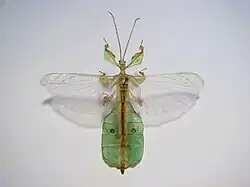 - ↑ Frank H. Hennemann, Oskar V. Conle, Marco Gottardo & Joachim Bresseel: Zootaxa 2322: On certain species of the genus Phyllium Illiger, 1798, with proposals for an intra-generic systematization and the descriptions of five new species from the Philippines and Palawan (Phasmatodea: Phylliidae: Phylliinae: Phylliini), S. 63, Magnolia Press, Auckland, New Zealand 2009, ISSN 1175-5326