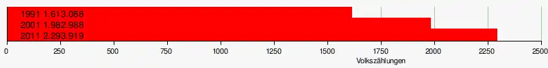 | Einwohner | 362.602 | 404.856 | 428.214 | 523.234 | 623.955 | 677.881 | 871.595 | 1.064.361 | 1.378.949 | 1.613.088 |