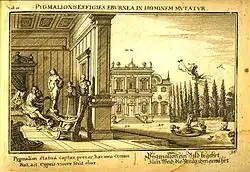 Diese von Ovid erfundene Geschichte enthält auch eine Poetik: Denn bei der Beschreibung der Lebensechtheit der von Pygmalion geschaffenen Statue heißt es: „ars adeo latet arte sua“[6] – „So sehr verbirgt sich Kunst in der eigenen Kunst“, womit er sein eigenes Ideal der Mimesis der Realität formuliert. In seinen eigenen Elegien, den Amores, hatte Ovid eine Geliebte namens Corinna besungen, für die es in der Realität keine Entsprechung gab. Gleichwohl behauptet er, viele Nebenbuhler gehabt zu haben.[7] Die Altphilologin Alison Sharrock sieht in Ovids Pygmalion die (bewusste oder unbewusste) Aufdeckung des männlichen elegischen Diskurses: Liebesdichtung erschaffe ihr eigenes (Kunst-)Objekt, nenne es „Frau“ und verliebe sich in sie bzw. in den kreativen Akt, sie zu erschaffen. Diesen Vorgang nennt sie „womanufacture“.[8]