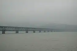 Sie wurde von dem chinesischen Eisenbahningenieur Jeme Tien Yow (Zhan Tianyou) entworfen und von dem Brückenarchitekten Mao Yisheng gebaut. Ihr Bau begann am 8. August 1934, am 26. September 1937 wurde sie fertiggestellt. Am 23. Dezember 1937 wurde sie im Antijapanischen Krieg gesprengt, um den Vormarsch der Japaner aufzuhalten. 1953 wurde sie wiederaufgebaut. Sie ist 1453 m lang und hat 15 Pfeiler.[1]