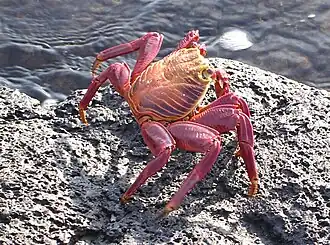 - Rote Klippenkrabbe (Grapsus grapsus): Die Krabbenart ist auf den Galapagos-Inseln und an der südamerikanischen Pazifikküste heimisch.