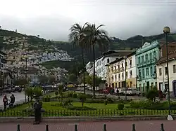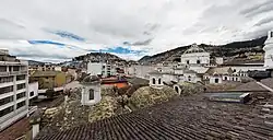 Die koloniale Altstadt reicht im Wesentlichen vom Panecillo im Süden bis zum Alameda-Park im Norden, an den sich ein Mischviertel anschließt, das bis zum El Ejido-Park reicht und an das sich wiederum nördlich das moderne Stadt- und Finanzzentrum zwischen Ejido- und Carolina-Park anschließt („Mariscal Sucre“-Viertel und Viertel nördlich der Avenida Colón). Sie hat eine Ausdehnung von etwa 8 Kilometern in Nord-Süd-Richtung und 500 bis 2000 Metern in Ost-West-Richtung.[5] Im kolonialen Zentrum befinden sich der Präsidentenpalast, die Kathedrale und die Basilika sowie die Kirchen, Konvente und Profanbauten, die den Status der Stadt als Weltkulturerbe ausmachen. Der nördliche Teil des Zentrums beherbergt das erst in den 1970er und 1980er Jahren gewachsene Finanzzentrum, aus der Altstadt verlegte Regierungsgebäude und die wichtigsten Einkaufszentren[6] sowie Wohnviertel der Mittel- und Oberklasse.